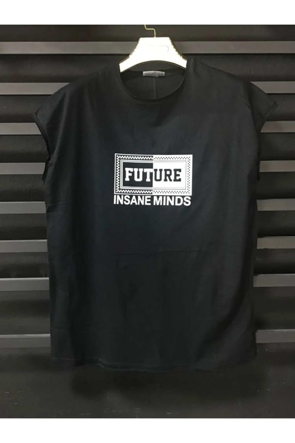 Future Yazılı Oversize Kolsuz Erkek T-shirt – Siyah Pamuk Street Style Tshirt