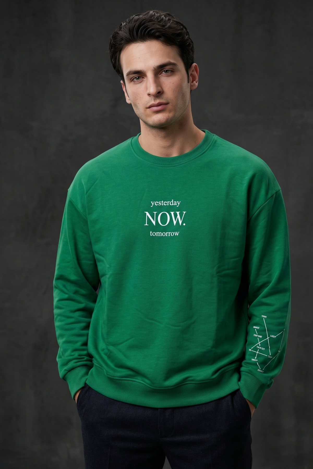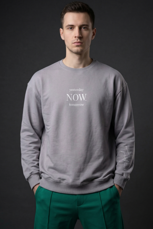 Now Baskılı İnce Uzun Kollu Oversize Sweatshirt Pamuk